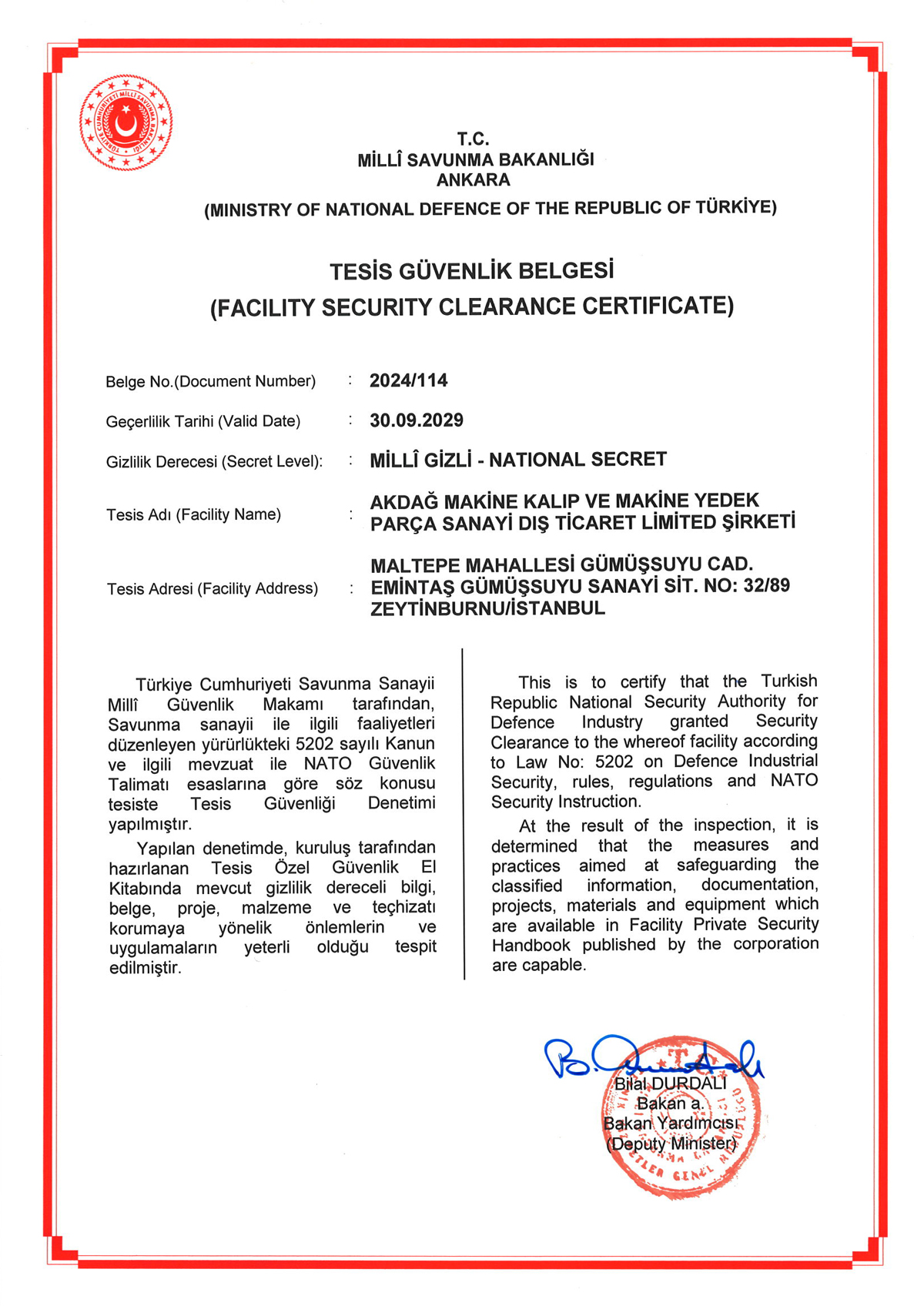 TESİS GÜVENLİK BELGESİ