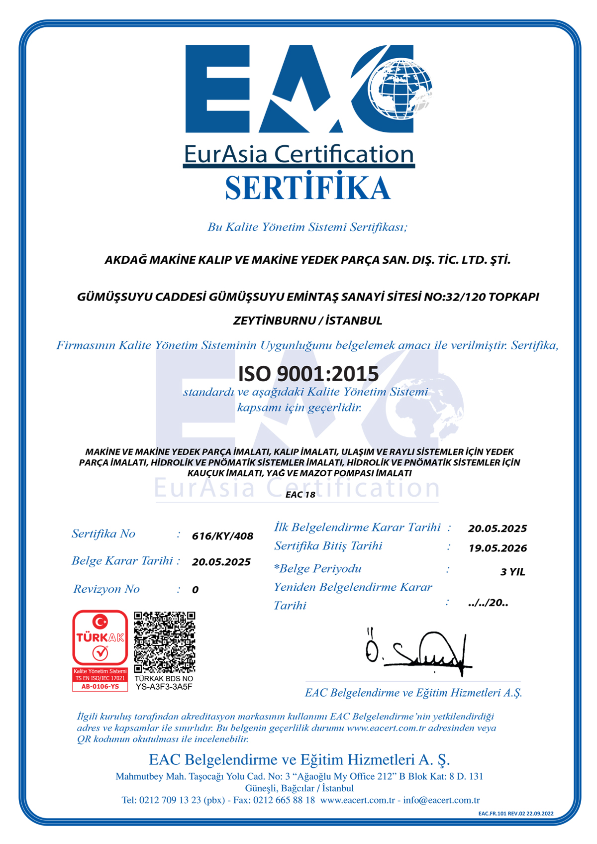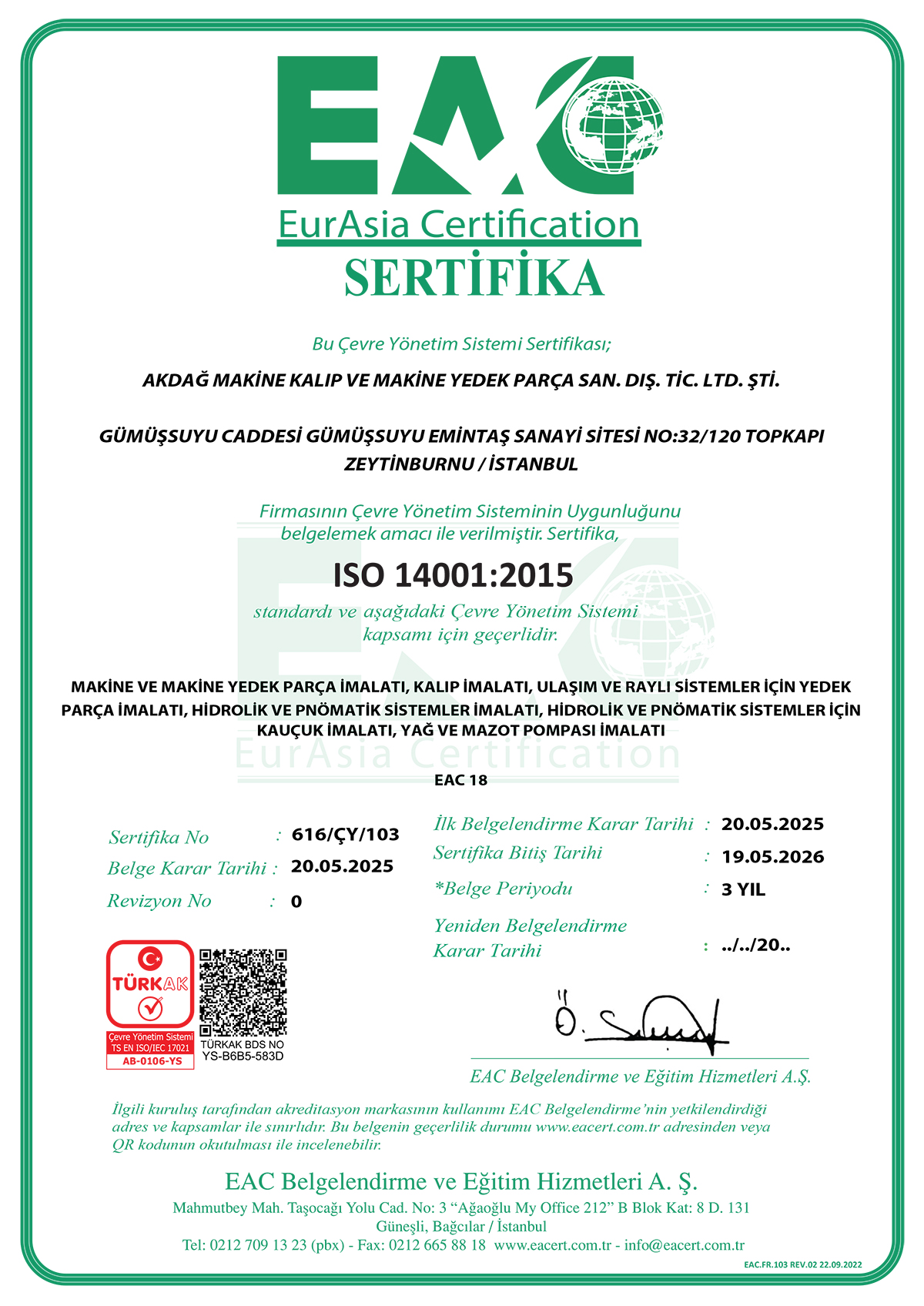 EurAsia Certication SERTİFİKA